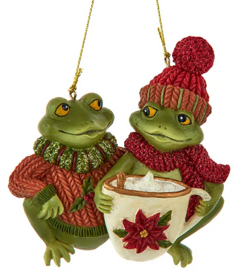 FROG COUPLE WEARING KNIT HAT & SCARF ORNAMENT