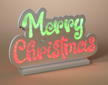 LIGHTED INFINITY MERRY CHRISTMAS SIGN WITH WOODEN BASE