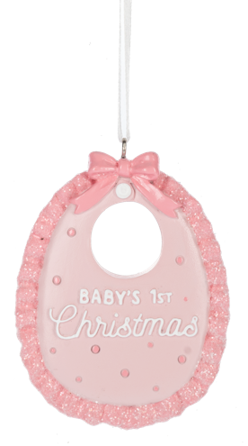 Baby Bib Ornament - Baby's 1st Christmas - Dimensions: 2 1/2" W. X 3 1/8" H.