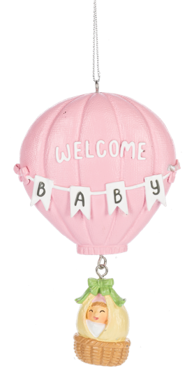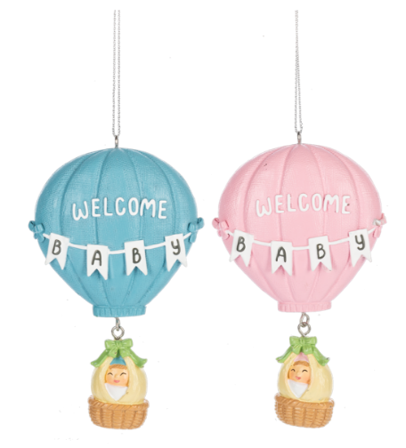 Hot Air Balloon Ornaments - Welcome Baby - Dimensions: 2 7/8" W. X 4 5/8" H.