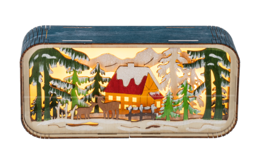 Led Light Up Laser-Cut Winter Scene Figurine - Dimensions: 8 5/8" W. X 2.36 D. X 4 3/8" H.