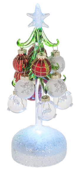 Red & White Christmas Tree With Ornaments With Light Up Base - Dimensions: 8" H.