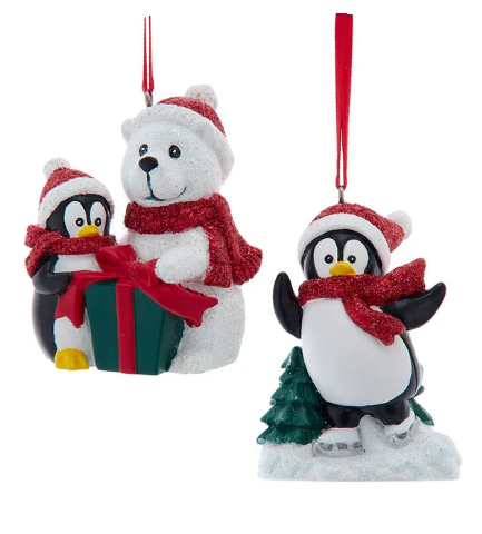 WHITE BEAR WITH PENGUIN ORNAMENT