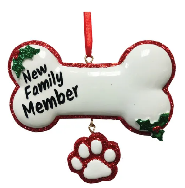 "NEW FAMILY MEMBER" DOG BONE ORNAMENT