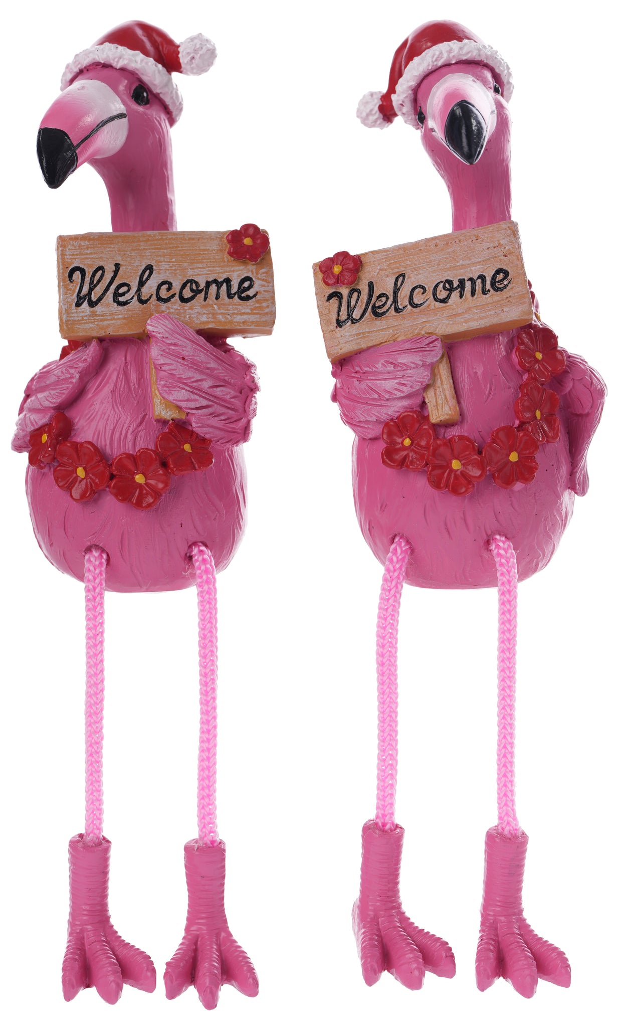 HOLIDAY FLAMINGO HOLDING SIGN SHELF SITTER