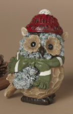 4.2"H Resin Holiday Owl Wearing Scarf