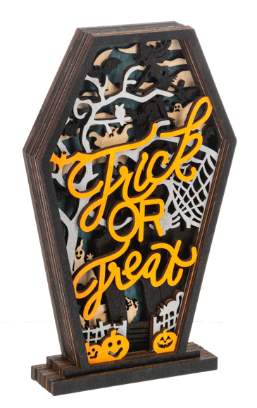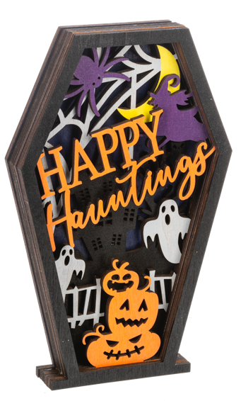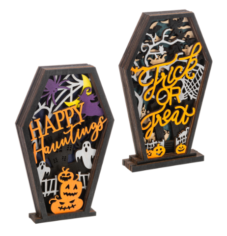 Wooden Layered Coffin Décor - Dimensions: 41/2" W. X 1" D. X 7" H.